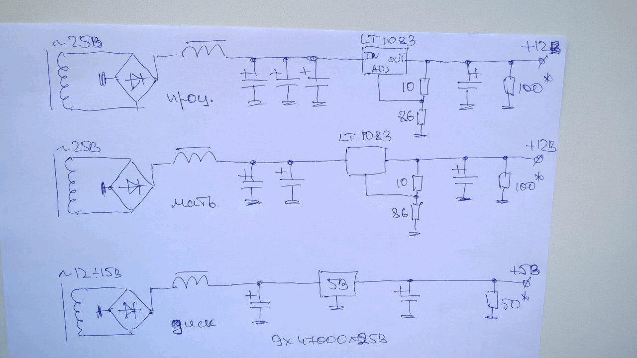 15.07.18 Я в отпуску. На даче. Выдался дождливый день. "Если вы слышите разницу двух разных USB кабелей, то тут причину надо искать в первую очередь в себе." Сделал вот такой USB кабель, для соединения музыкального компа с цап. Хорошего качества кабель - FTP 2PR 24AWG CAT5 экранированная витая пара, материал проводника высокоочищенная бескислородная медь, диаметром 7*0.16 мм.Используется два таких кабеля параллельно. Один для передачи данных D+, D-, экран которого сондиняется с корпусом на стороне приемника. Другой для питания VCC и GND, экран которого соединяется с корпусом на стороне передатчика. Используется пара проводников на каждый сигнальный и питающий конец. Таким образом задействовано все восемь проводов в двух кабелях. Длину можно будет подогнать по месту. ![]() Реставрировал старые советские колонки. Лежали в сарае. "А колонки не простые в них динамики двойные". 10гд36, 4 Ом. Колонки видимо экспериментальные от музыкального центра "Романтика". Еще пара колонок от магнитофона "Маяк", эти уже обычные, по одному диманику - задняя стенка из двп. Зато в них головки лучше сохранились. И того шесть головок. У двух подвесы высохли, у двух еще ни чего, и две как новые - те что во втором ряду стояли. Собрал одну пару с двойными динамиками, выкинул всю дребедень фильтров, соединил головки последовательно, промазал все стыки пластилином, завернул современные саморезы (там шурупы были с молотка забиты) - песня. Объем конечно катастрофически мал. ![]() ![]() ![]() ![]() ![]() ![]() Собрал БП. 2Х2-30В регулируемое, стабилизированное, до 3А, и переменка регулируемое от 0 до 28В в зависимости от нагрузки. Корпус конечно страшный, но... . ![]() ![]() ![]() ![]() ![]() ![]() Еще нашел в сарае приемник советский "Ленинград 006 стерео", тьюнер что-то не работает, включил на вход уся музыку с хай-файного видика, звук обалденный, какой то чудо динамик в нем стоит. ![]() Еще нашел в том же сарае вот такие емкости. ![]() 09.12.18 Случилось тут вот что. "......А в моем дому завелось таааааакое..." Послал мне Бог, в лице Николая Васильевича, сабвуфер. Я подключил, мне не понравилось. Речь сейчас не об этом. Я заметил что через саб с цап идет фон 100 Гц. Довольно быстро ваявил источник, и устранл проблему, с маленькой помощью моих друзей, разумеется. Хотел уже отметить это событие. Но заметил еще посторонний звук, поглядел спектрометром смартфона 3 с половиной кГц где-то, весело бззззззззззззззз, "это бзззззззз не спроста". И начались пляски с бубном. Три дня и три ночи.А этот гад пристроился на стабилитроне и наблюдал за мной все это время. ![]() После этого подключил питание выхлопа цапа к аккумуляторам 7х4=28 В (от старого пылесоса - литиевые) 18650 23.12.18 завтра кажется Рождество. и скоро Новый Год. На днях цап заиграл вдруг неожиданно очень хорошо. Собрал опять на галетном переключателе, два канала, так что можно менять типы и марки конденсаторов в клоке 1540, емкостью 820 пФ, 8 вариантов в т ч один вариант 100пФ. Еще сделал переключение электролитов в питании румынской красной платы, БГ ФК 2200х35 И простой электролит. Буду выбирать. Поставил кенотрон американский. Переделал питание выхлопа: RC фильтр добавил, сейчас схема такая. ![]() ![]() ![]() ![]() Спасибо Илье, Диме Таничу, Шамилю Исмагилову - за приборы измерения индуктивности, Андрею Кадочникову за перепайку smd конденсаторов и полезные советы, Гуляеву Андрею Николаевичу за чертежи в векторной графике, Бажину Игорю, Лози